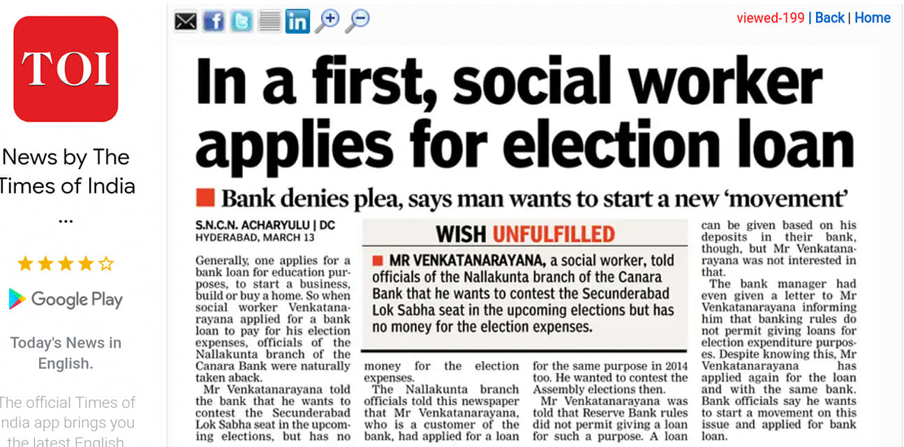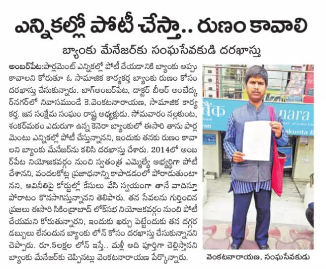 సికింద్రాబాద్ M.P. అభ్యర్ధిగా పోటీ
