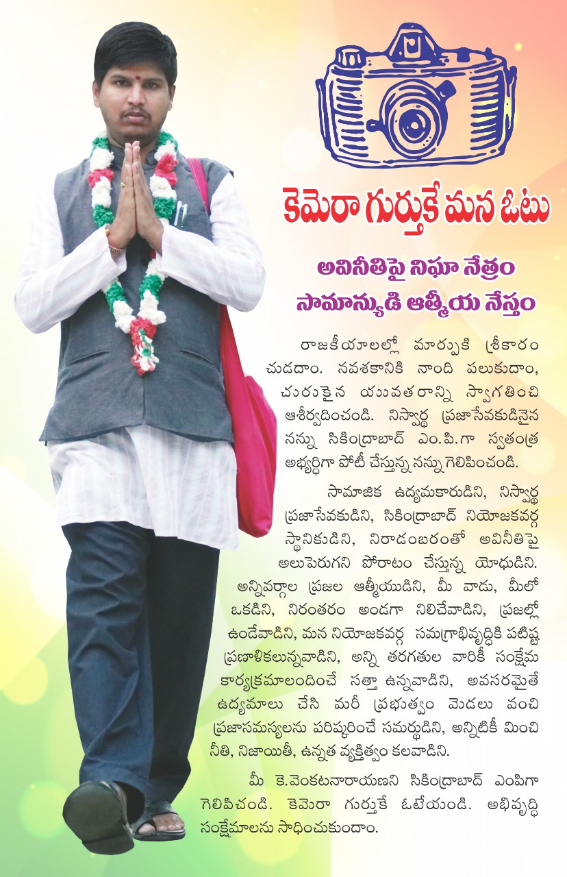 ఎన్నికలో పోటీచేయడానికి బ్యాంక్ ను ఋణం అడిగాను. బ్యాంక్ వారు ఋణం ఇవ్వలేదు. భారతరాజ్యాంగం లోనే ఇది లేదు. ఎక్కడ ఈ రూల్ లేదు అని చెప్పారు 2014 ఎం.ఎల్.ఏ ఎన్నికల్లో అంబర్పేట నియోజకవర్గంనుండి స్వతంత్ర అభ్యర్థిగా పోటీచేసాను. 2015 వరంగల్ పార్లమెంట్ నుండి ఎం.పి.గా పోటీచేయడానికి వెళ్ళాను ఎన్నికలో పోటీచేయడానికి బ్యాంక్ ను ఋణం అడిగాను వారు ఋణం ఇవ్వలేదు బ్యాంకు వారు అప్పు ఇవ్వనందు వలన పోటీచేయలేక పోయాను, 2019 సికింద్రాబాద్ పార్లమెంట్ నుండి మిత్రుల సహాయం తో ధరావత్తు కట్టి ఎం.పి.గా పోటీచేస్తున్నాను. నిన్నే నామినేషన్ పత్రాలు ధాఖలు చేసి వచ్చాను.
