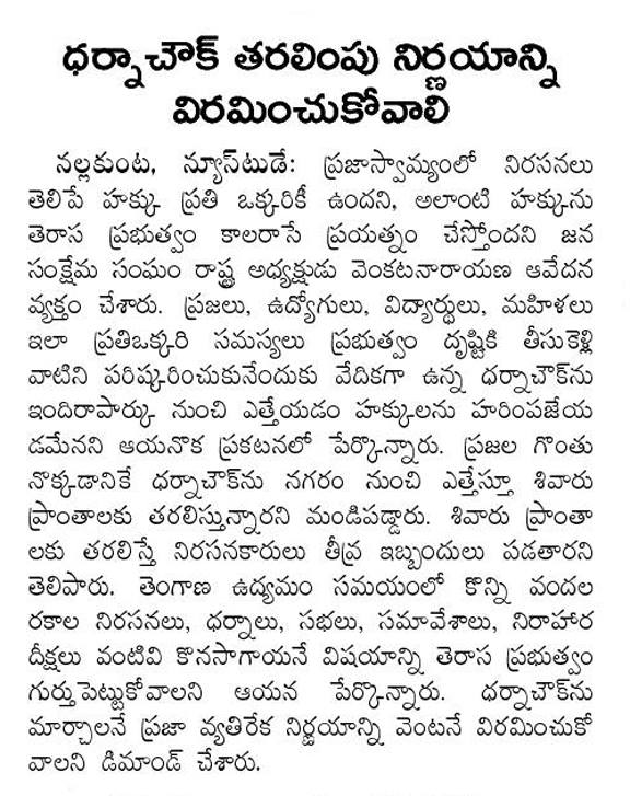 ధర్నాచౌక్ తరలింపుకు వ్యతిరేకంగా