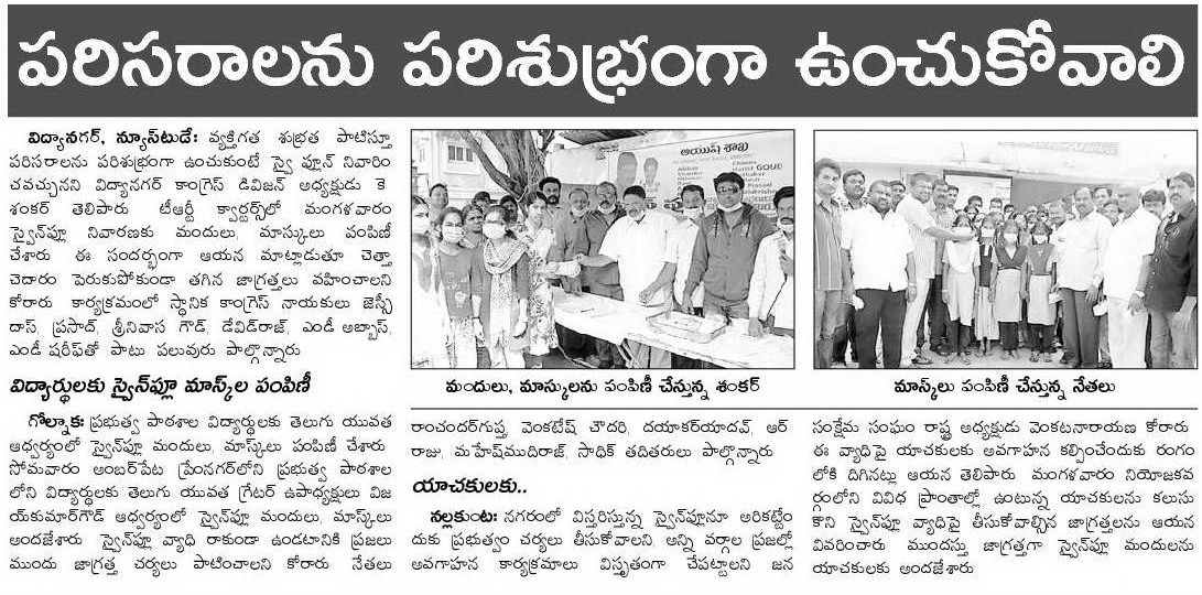 బిచ్చగాళ్ళకు స్వైన్ ఫ్లూ నివారణ మందులు, మాస్క్ ల పంపిణీ, పరిసరాల పరిశుభ్రతపై అవగాహన..