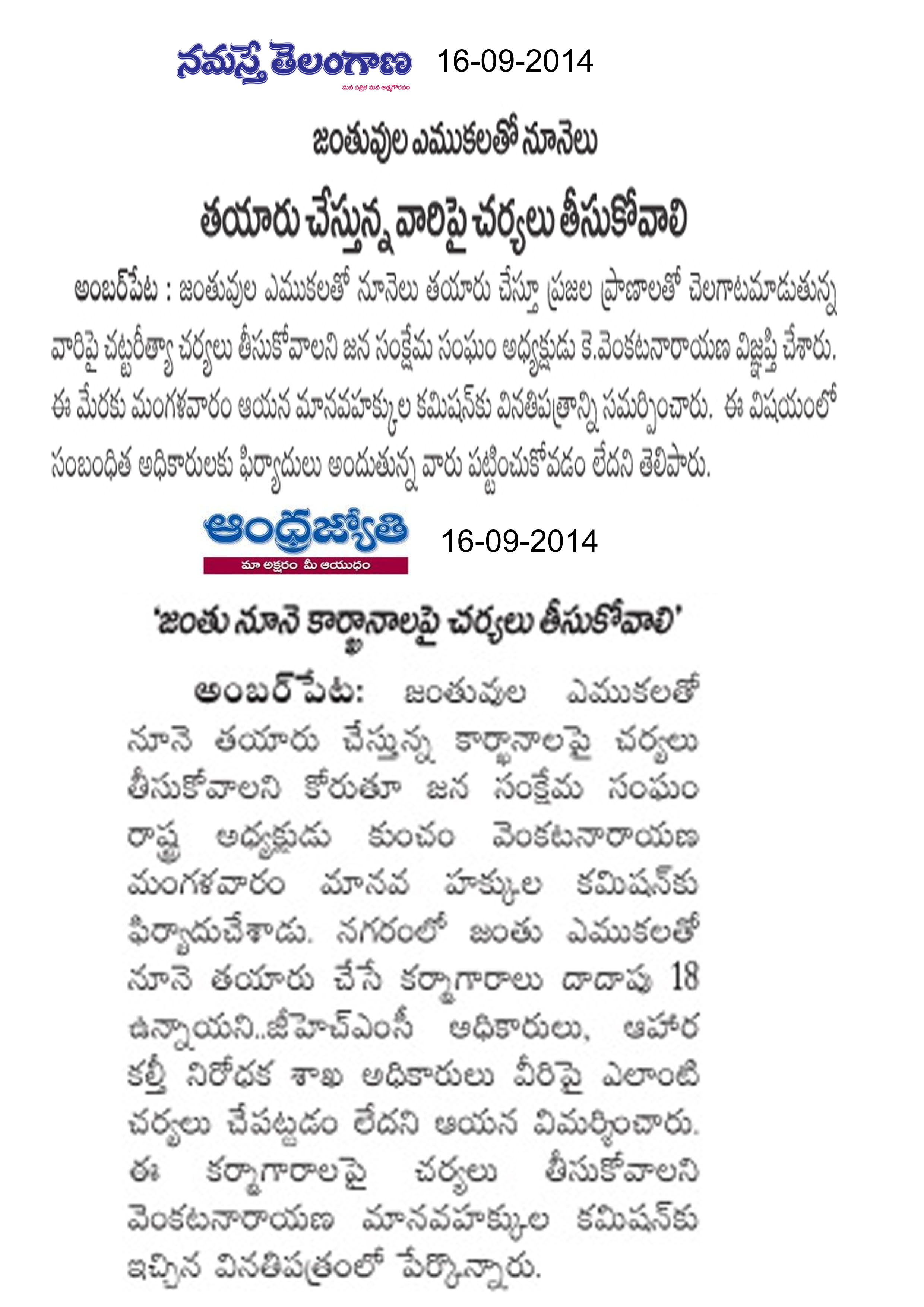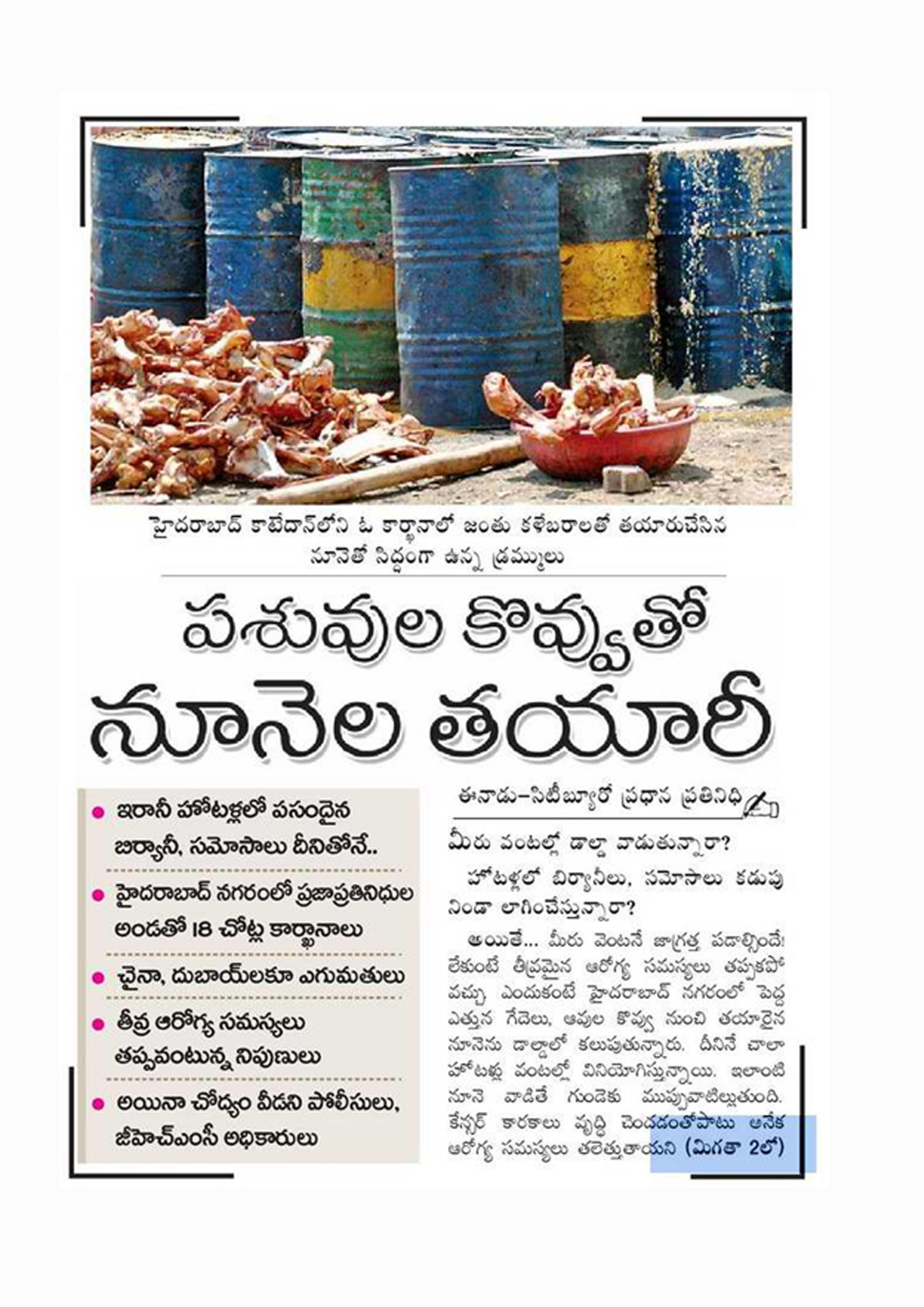 జంతువుల కొవ్వుతో నూనెల తయారీకి వ్యతిరేకంగా