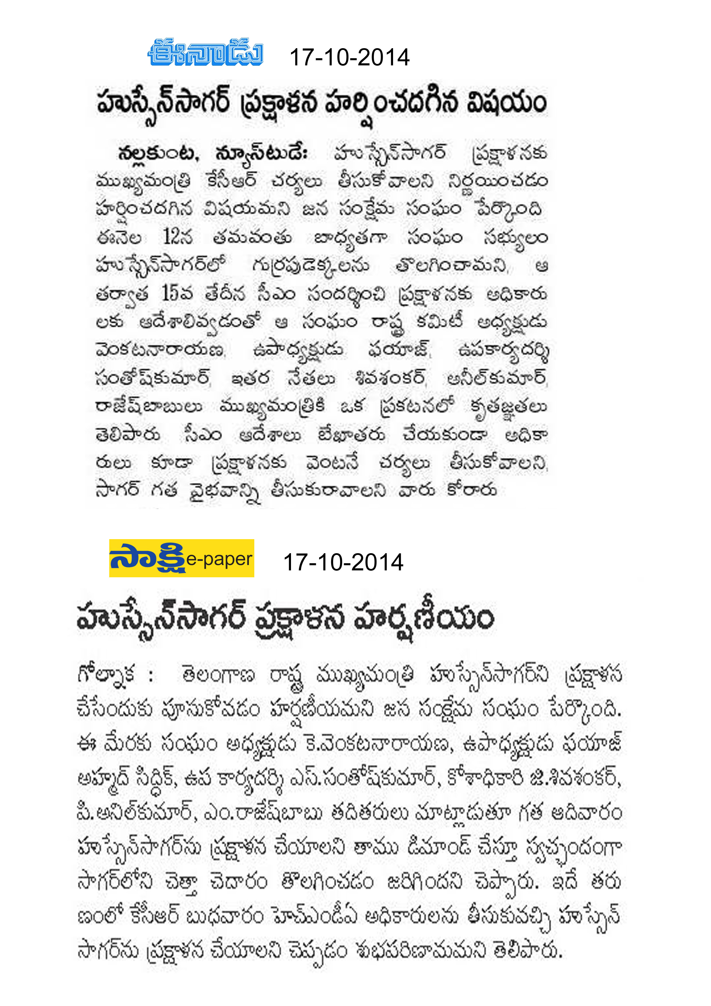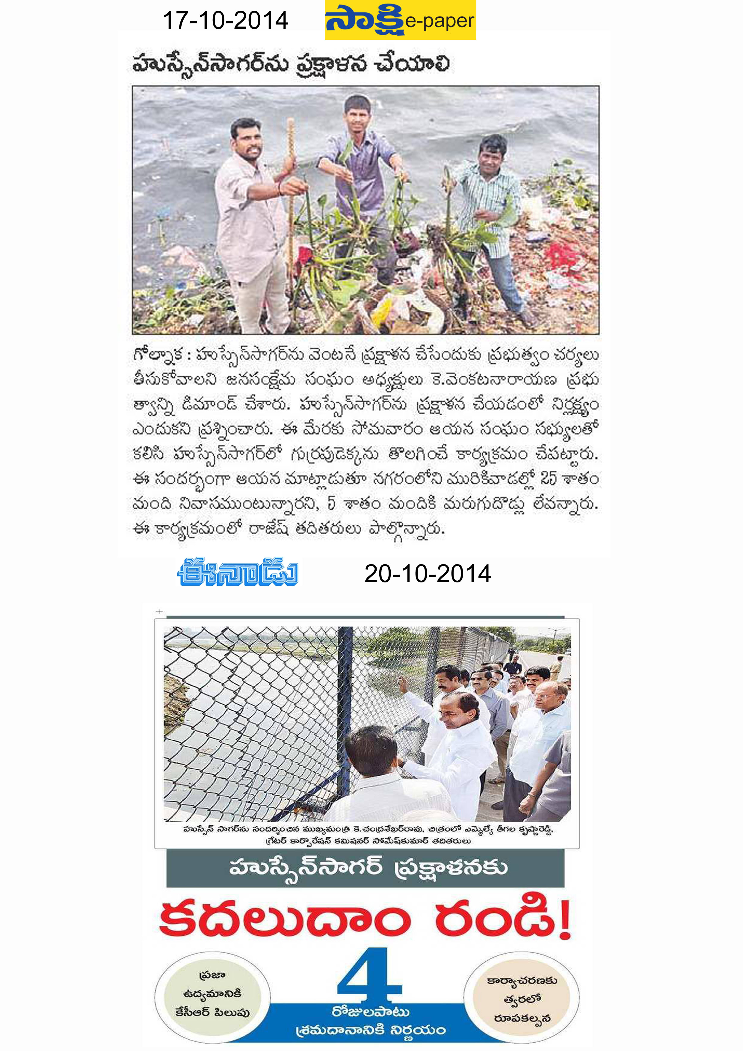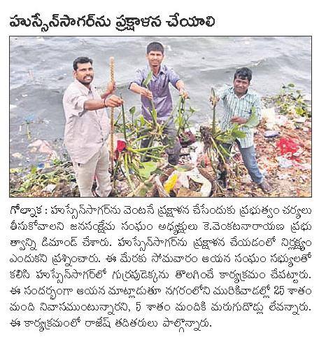హుస్సేన్ సాగర్ పరిశుబ్రతకోరుతూ...