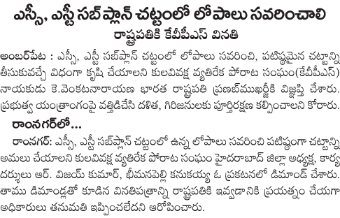 ఎస్.ఎస్టీ. సబ్ ప్లాన్ లోపాలను సవరించాలని.